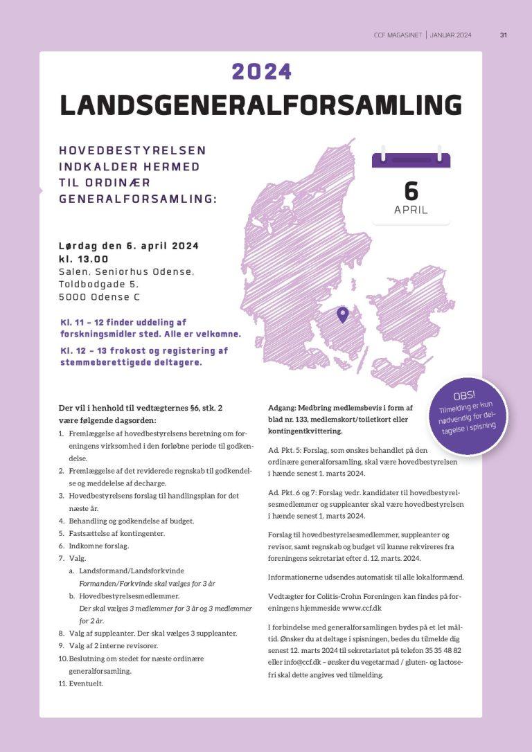 Colitis-Crohn Foreningen holder Landsgeneralforsamling den 6. april 2024Generalforsamlingen holdes hos…